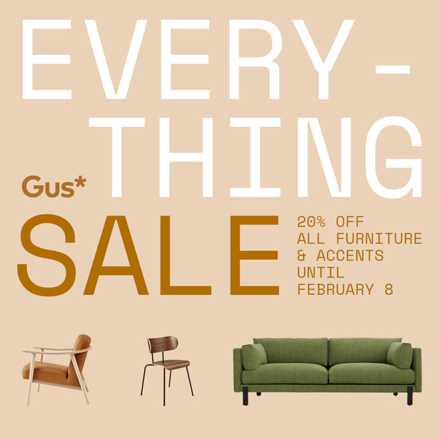 The Gus* Modern Everything Sale is now underway! Save 20% on all Gus* Furniture and Accents until February 8. The sale applies to in-stock and new orders. An automatic discount will be applied at checkout.