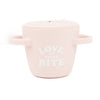 The Happy Snacker is a first-of-its-kind two-piece silicone snack cup with a mess-proof snap-tight lid and soft silicone opening so little hands can easily access food and prevent spills. Designed with easy-grip handles, it fits in car seats and stroller cup holders.