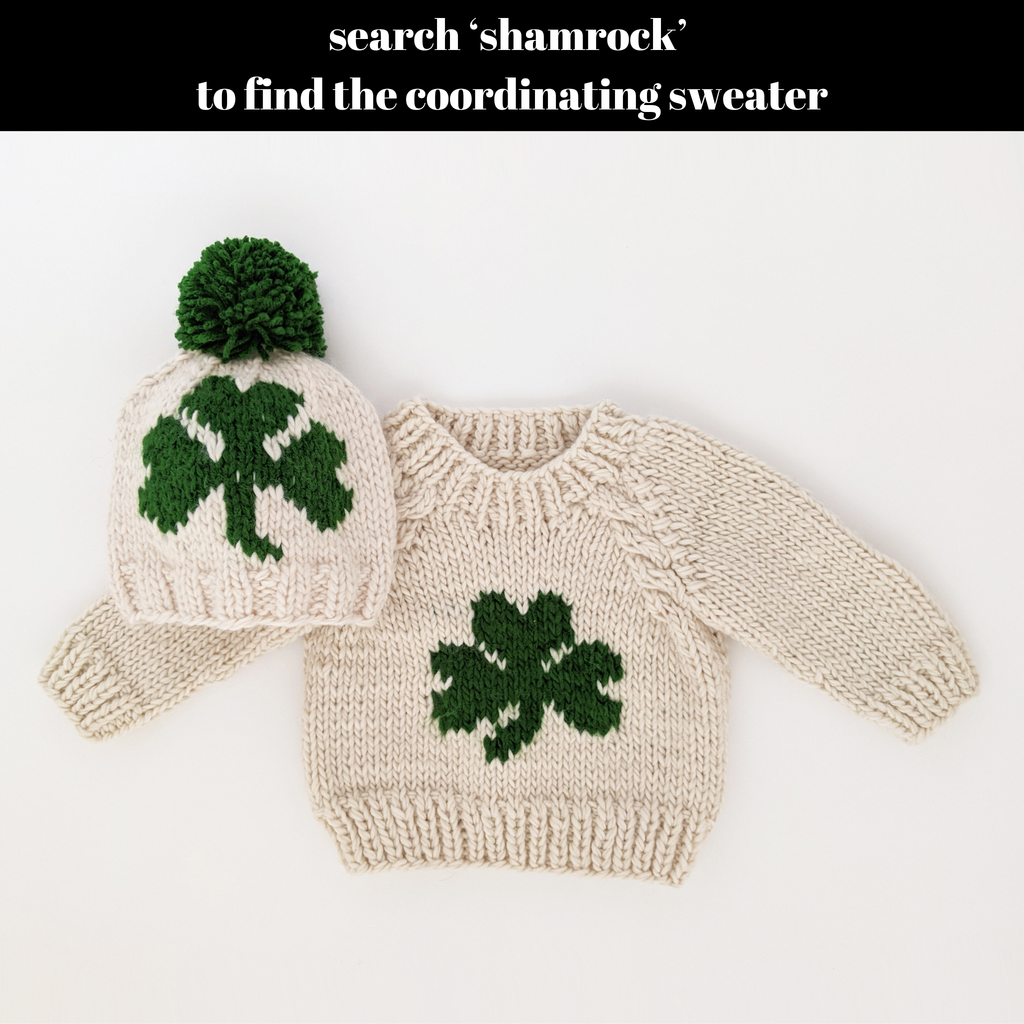 Shamrock St. Patrick's Day Hand Knit Beanie Hat Baby & Kids