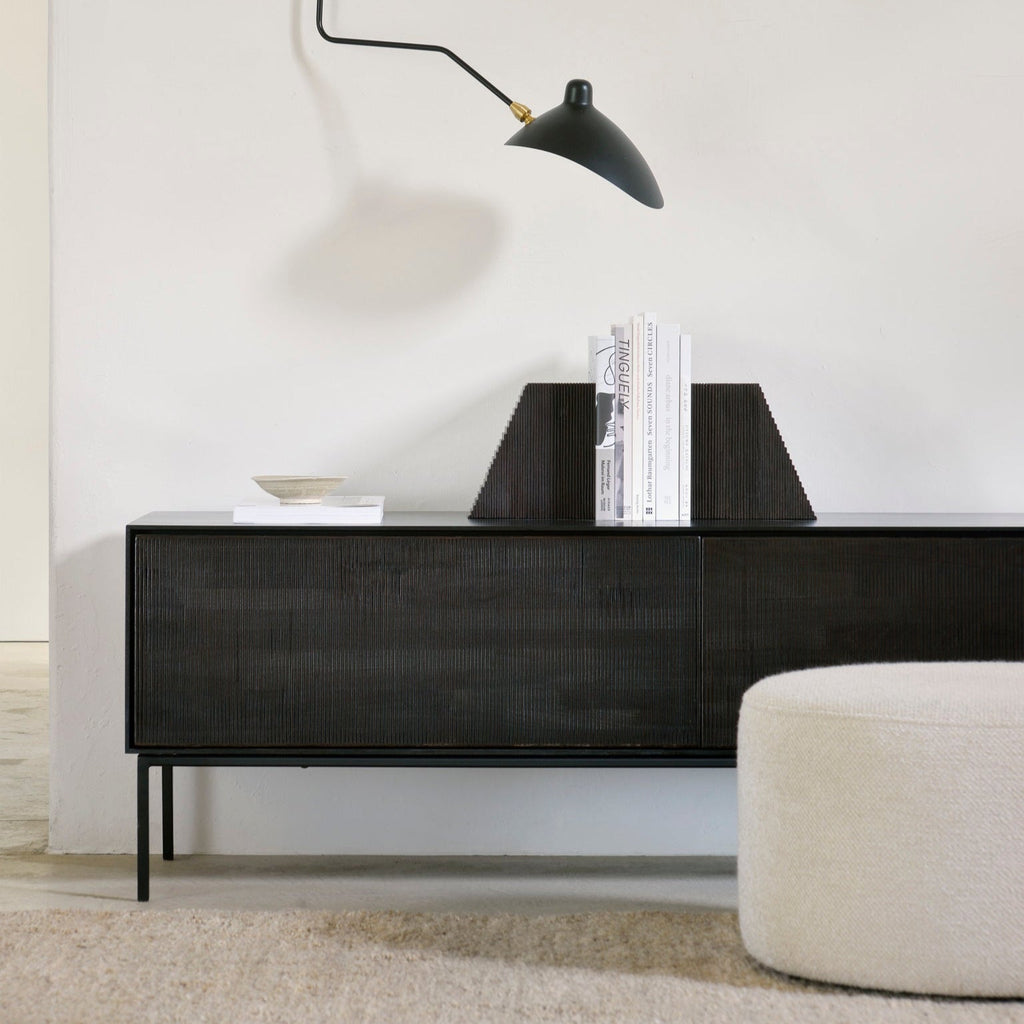 The Ethnicraft Grooves TV console is a unique piece that’s full of character. Small imperfections are part of the story, even more so: they enhance its design. The Grooves console is an organic modern furniture design that fits perfectly in any contemporary living room.
