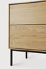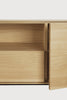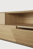 For the Whitebird collection, designer Alain van Havre brings together opposing elements, combining soft round legs and eye-catching graphic lines into light and airy designs. The Whitebird TV cupboard features 1 push-open door, 1 flip-down door and 2 push-open drawers. Made of solid oak with a varnish finish and black metal legs.