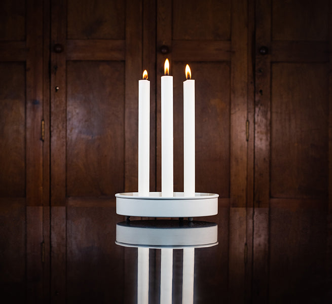 British Colour Standard small round powder-coated steel candle platter.
