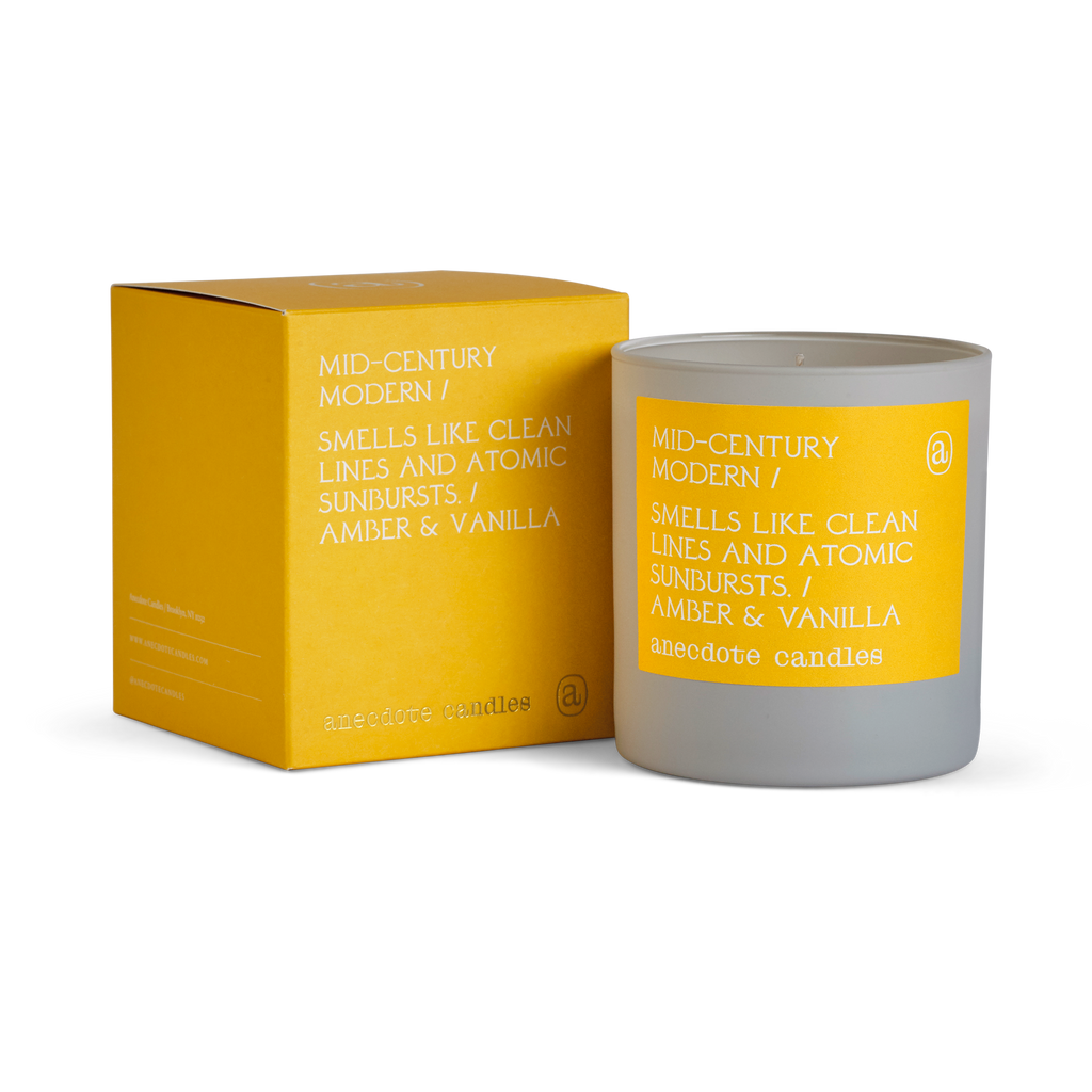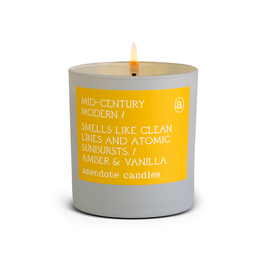 Warm and complex, Mid-century Modern's rich woody base is topped with lively floral and citrus notes. Much like the subtle pops of color that defined living room pieces of the era, hints of lavender, jasmine, and orange add contour to this candle’s inherent simplicity. Additional Information: Made with a coconut-soy wax blend, cotton wicks, and phthalate-free fragrance oils.