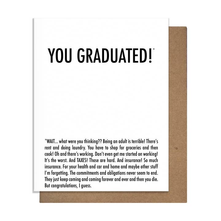 This graduation card is letterpress printed on a vintage Windmill press in Raleigh, NC. Each card is 100% cotton paper, blank inside, includes a kraft envelope and cello sleeve. A2 size (4.25" x 5.5")
