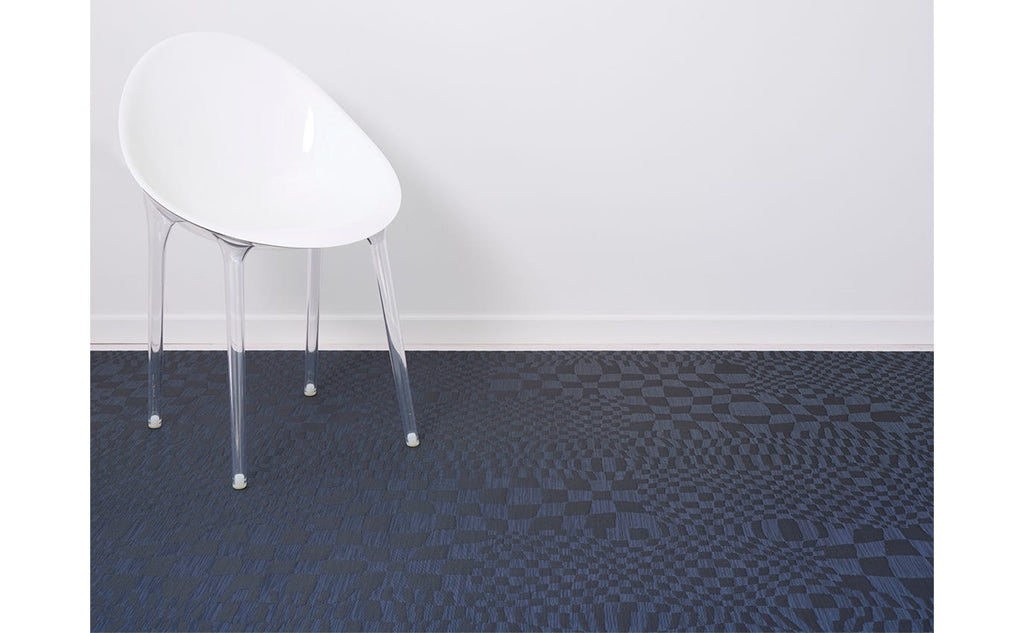 The geometry, symmetry, and contrast of a checkboard pattern is playfully softened in Warp. Squares break free of the grid, stretching and bending to form rows of undulating organic lines in natural tones.
