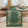 Green Embroidered Holly Table Runner - 16"X72"
