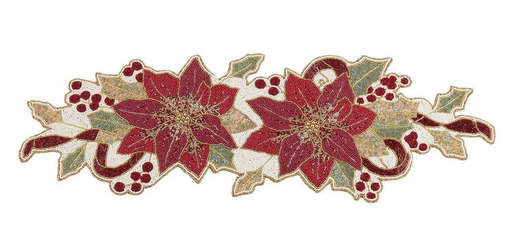 Perfect for always-on décor, this charming Poinsettia Design Beaded Table Runner brings a refined note to any space. It's ideal for the winter season, adding a beautiful splash of color to your home. The glass beads catch and reflect light, lending a glittery touch to the tabletop, while the red and green color palette makes it easy to pair and fit.