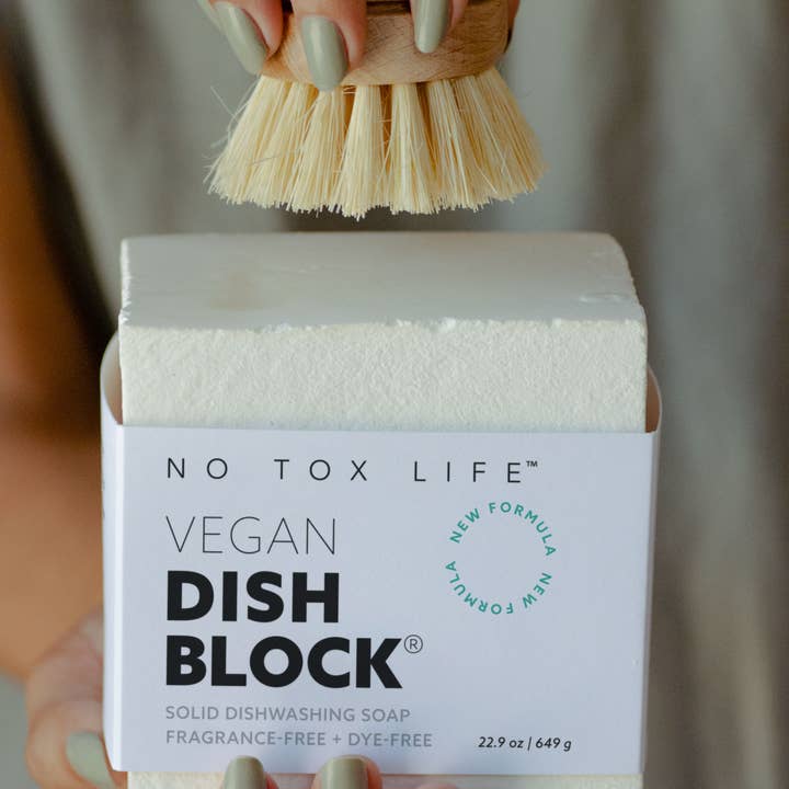 The trademarked DISH BLOCK® concentrated dishwashing soap is a cleaning powerhouse with a rich, sudsy lather. Cuts stubborn grime and grease on dishes, pots and pans. With added aloe vera to be gentle on your hands. Free of dyes and fragrance.