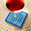 Coasters are 4”x 4” resin with cork backing and round corners.