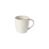 The Brisa Mug, handcrafted in Portugal from fine stoneware, features organic shapes inspired by the Algarve Coast. Its reactive glaze in white and blue creates a unique finish, ensuring that no two pieces are alike.