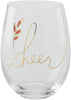 Sentiment cheer stemless beverage glass, adds a touch of gold verbaige adds a little glitz to your holiday table.
