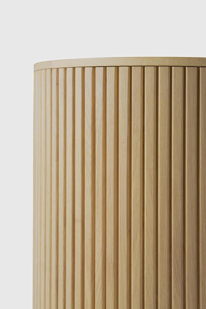 Designed by Jacques Deneef, the Roller Max is a clever multifunctional item that combines a side table with storage. Encapsulated in its stacked wood-stick effect, the tabletop can be easily removed to hide newspapers, toys, cushions, and throws from daily life—the perfect solution for smaller living spaces.