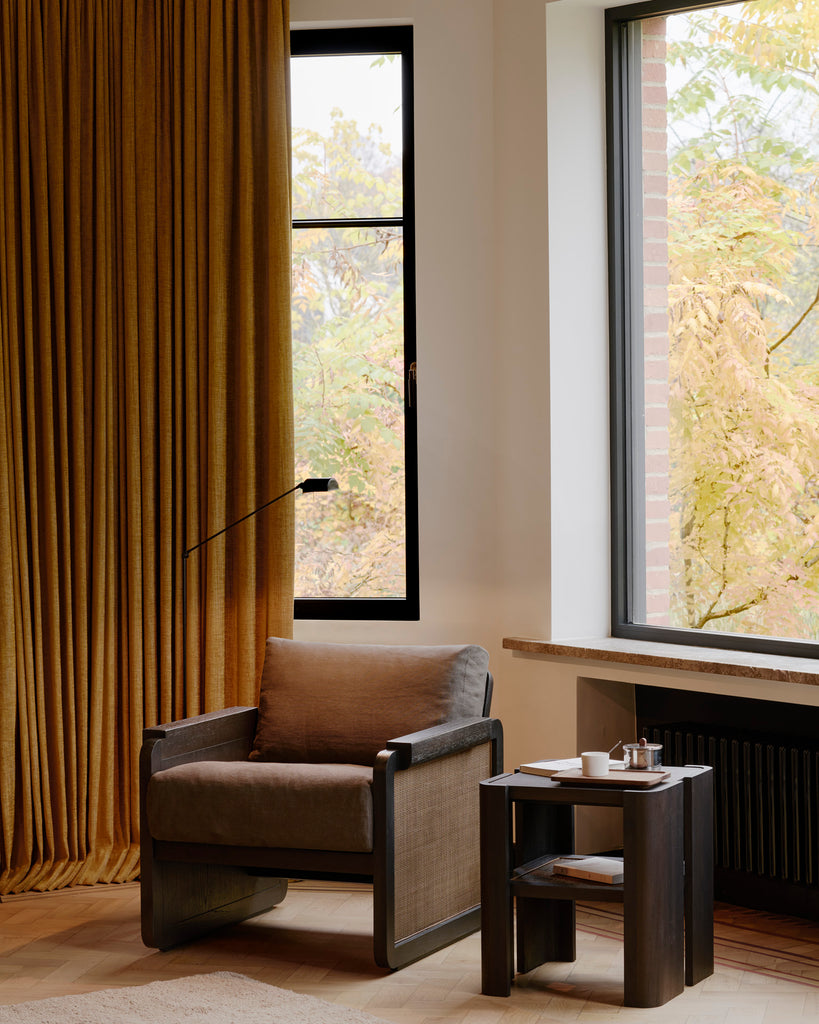The Panel collection brings effortless comfort and natural elegance into your space. Designed by Jacques Deneef, this statement range balances generous proportions with refined functionality. A thoughtful mix of materials and striking geometric forms gives the collection a timeless appeal. Whether paired together or standing alone, the Panel lounge chair and side table bring warmth and character to your lounging moments.