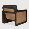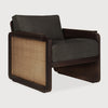 Made from dark brown tainted teak with a varnish finish, this chair features rattan detailing in a Roasted colourway and 100% linen cushion covers over high-density foam.