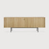 Made from solid oak with a hardwax oil finish or varnished teak with an off-black varnish.