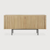 The Roller Max sideboard offers functional storage in an eye-catching modern design. Featuring mahogany sliding doors, adjustable shelving, and seamlessly integrated handles in a solid teak body with understated teak legs. The result is a minimalist, contemporary storage piece for any room in your home. Designed by Alain van Havre.