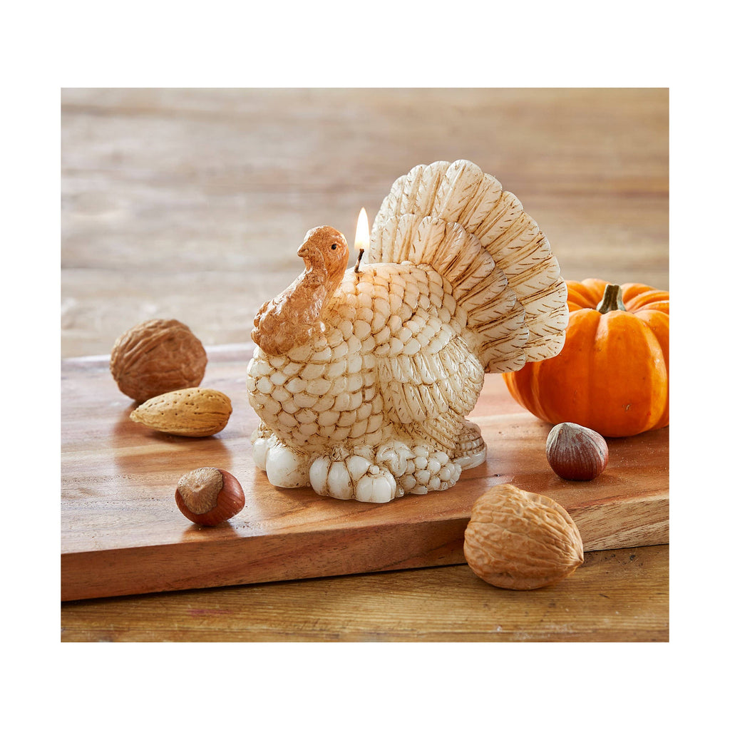 Set the scene with our toby turkey shaped candle. Set the tone for fall with their warm glow and rustic look in rich, warm autumnal colors. Use multiple to create dramatic displays for tables, consoles or mantels. Gobble, gobble!