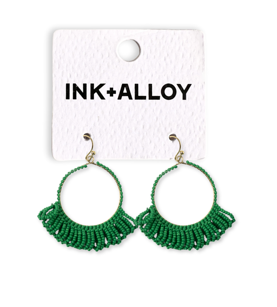 Handmade by skilled artisans in India. Hypoallergenic nickel + lead-free brass hardware. Human hands make these accessories. A slight variation in size and color is considered part of the beauty of these one-of-a-kind pieces. To extend the life of your accessories, store them in a dry place while swimming, showering, or working out.