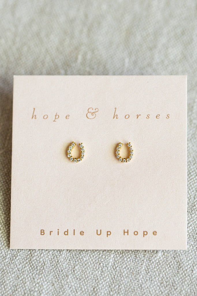 These dazzling horseshoe stud earrings, with shimmering rhinestones, symbolize luck, strength and timeless cowgirl charm!