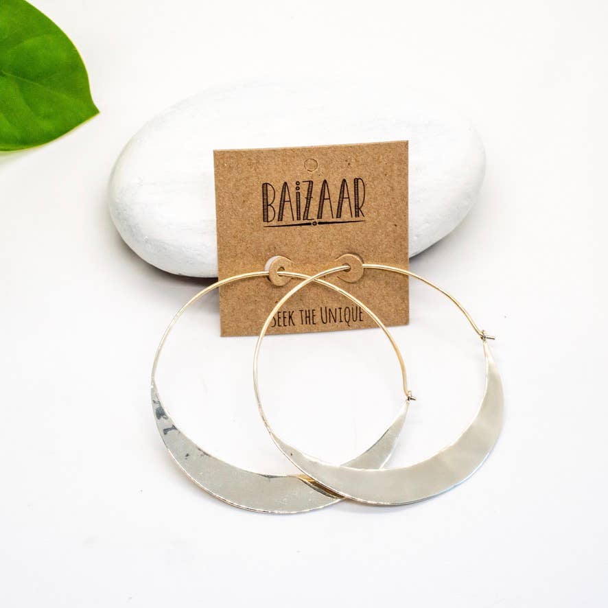 Sterling silver crescent earrings. Large size: 2.5" x 2.5". Handmade jewelry.