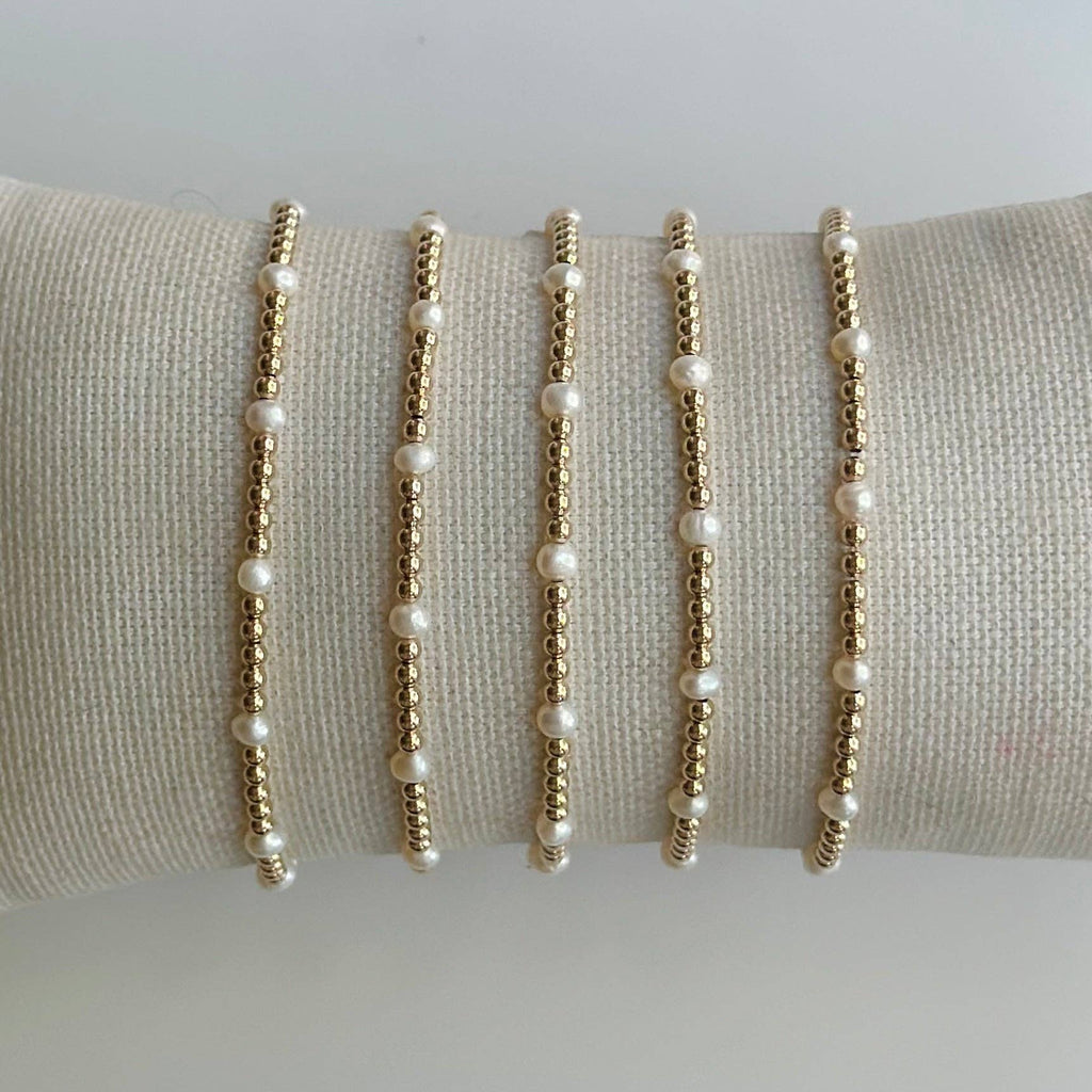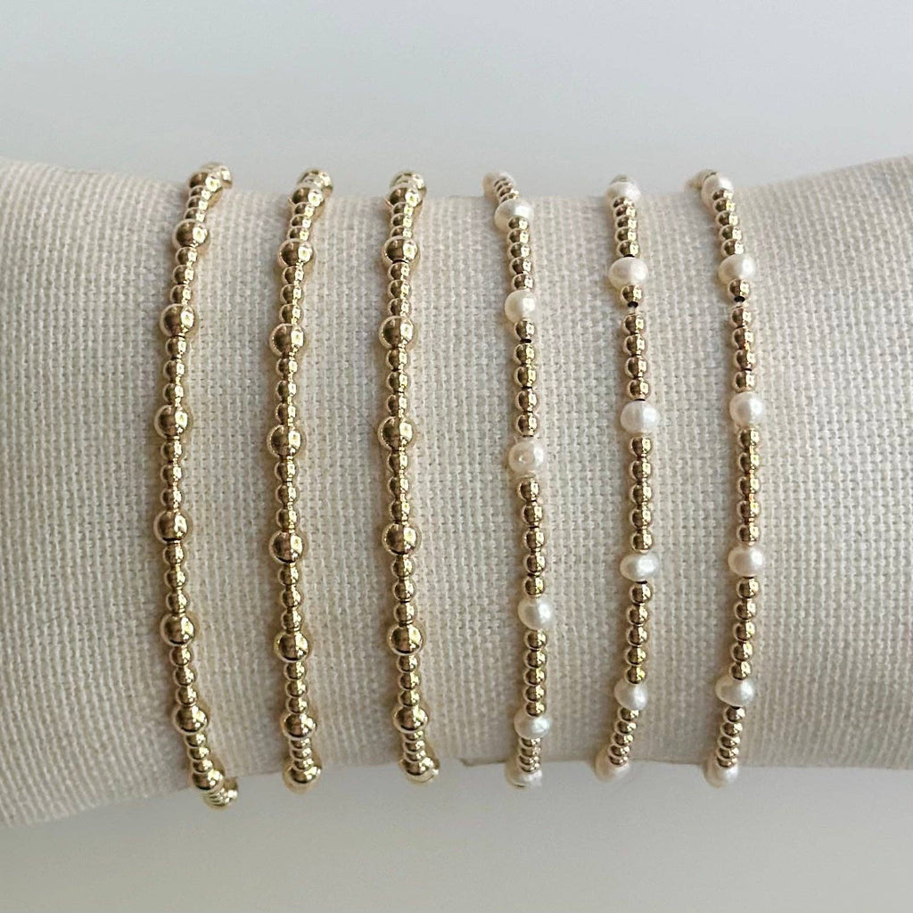 * Who doesn't need more grace? This beautiful bracelet symbolizes grace given and received! * Non tarnishing, 14k gold filled beaded bracelet * 2.5mm beads with 4mm or pearl beads * Stretchy and fits wrist comfortably up to 6.75" *