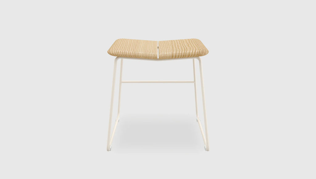 Taking cues from contemporary Scandinavian design, the Aero Stool features a gently rounded chamfered seat made from two perfectly balanced pieces of solid FSC®-certified Ash wood set atop an airy, curved metal frame. Playful and lightweight, the dining stool moonlights as extra seating for bustling living rooms, entryways and bedrooms. Choose from three of-the-moment shades that will breathe life into your decor. Also available as a Counter Stool and Bar Stool.
