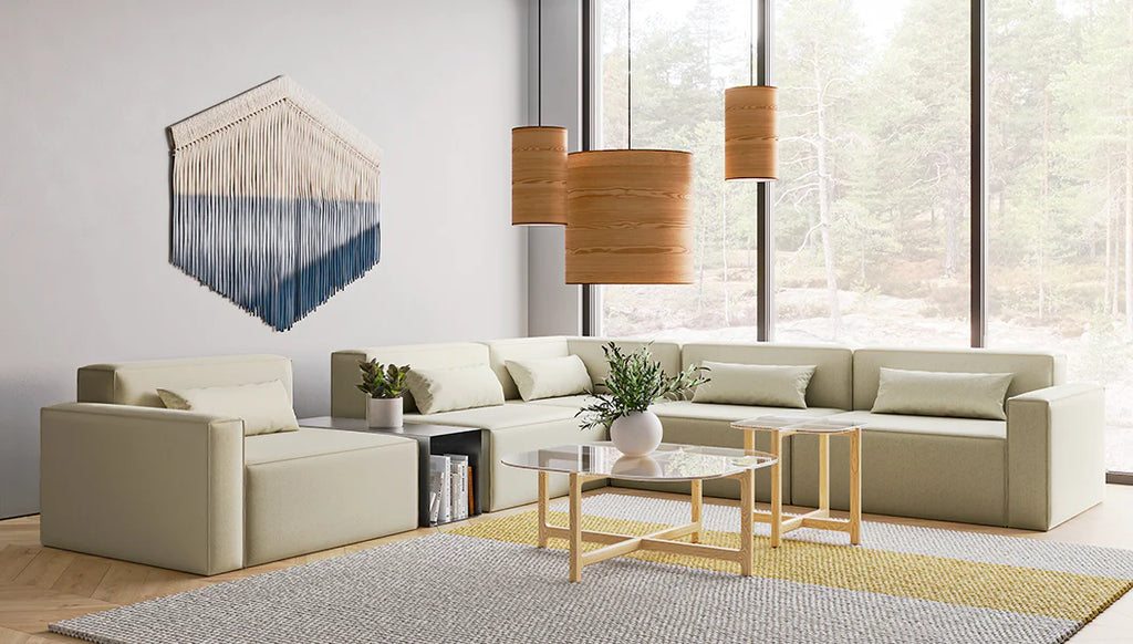 The Mix Modular Collection lets you mix and match components and fabrics to build a custom sectional, sofa or seating group to perfectly suit your space. The design uses 7 basic components (Left Arm, Right Arm, Armless, Corner, Ottoman, Block Table & Prism Table) which can be combined to create an unlimited number of seating configurations. Choose matching fabrics or mix things up to make it your own. Components can be easily reconfigured or added later to adapt to the changing needs of any home or workspace. The tight seat and back give the design a clean-lined, contemporary look, and each component has French seams to subtly soften the edges. Select components include a matching bolster cushion for added style and comfort. Constructed with kiln-dried 100% FSC®-Certified hardwood in support of responsible forest management. Mix Modular uses a clean, ultra soft, long-strand fiber fill material that offers the comfort and feel of traditional waterfowl down. This material is created through a process that benefits the environment by diverting 316 plastic bottles away from landfills, waterways and oceans for each Mix Modular Sectional we build.