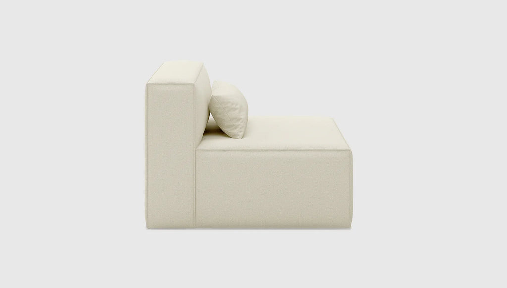 The Mix Modular Collection lets you mix and match components and fabrics to build a custom sectional, sofa or seating group to perfectly suit your space. The design uses 7 basic components (Left Arm, Right Arm, Armless, Corner, Ottoman, Block Table & Prism Table) which can be combined to create an unlimited number of seating configurations. Choose matching fabrics or mix things up to make it your own. Components can be easily reconfigured or added later to adapt to the changing needs of any home or workspace. The tight seat and back give the design a clean-lined, contemporary look, and each component has French seams to subtly soften the edges. Select components include a matching bolster cushion for added style and comfort. Constructed with kiln-dried 100% FSC®-Certified hardwood in support of responsible forest management. Mix Modular uses a clean, ultra soft, long-strand fiber fill material that offers the comfort and feel of traditional waterfowl down. This material is created through a process that benefits the environment by diverting 79 plastic bottles away from landfills, waterways and oceans for each Mix Modular Chair we build.