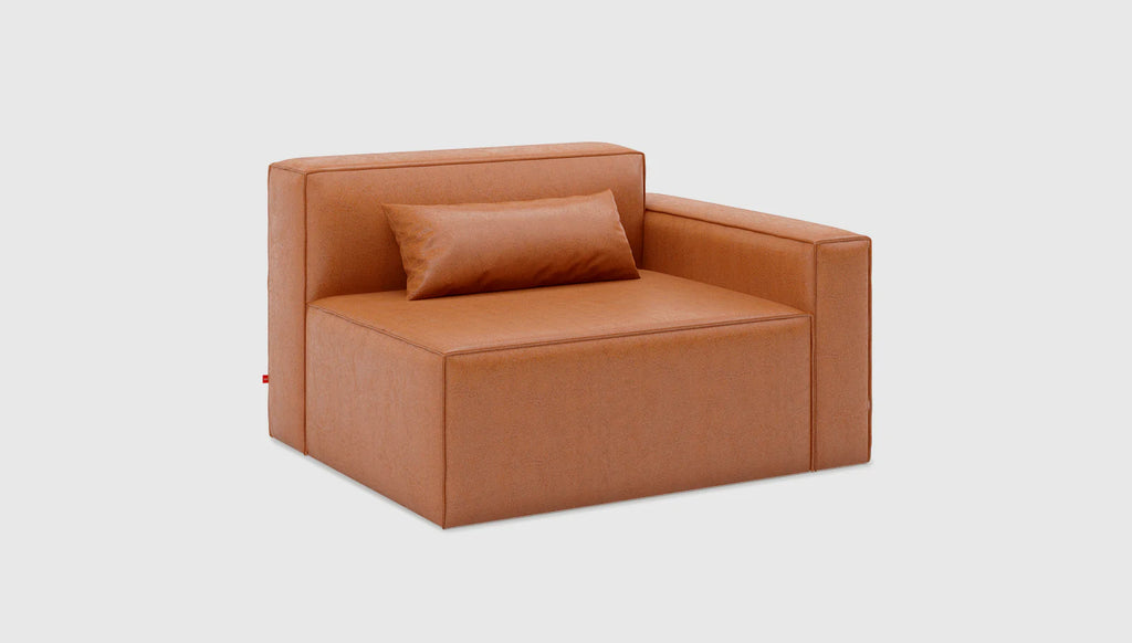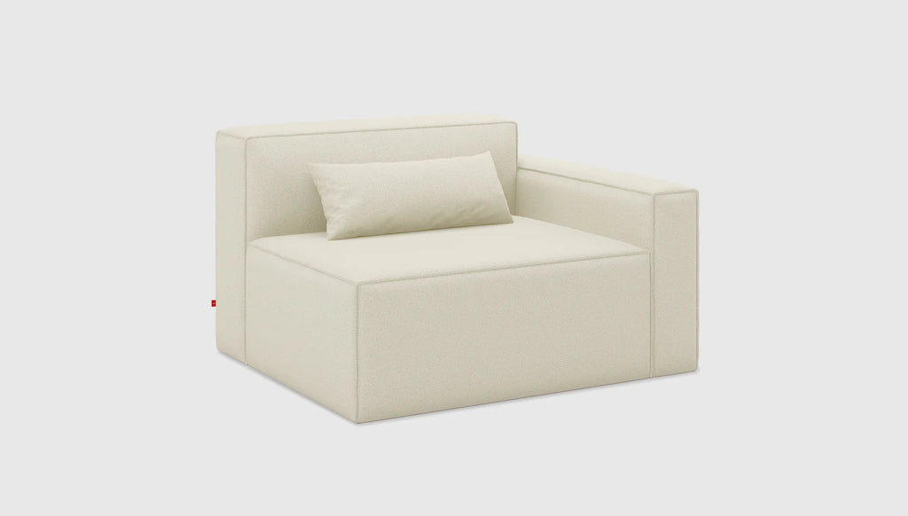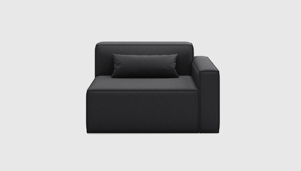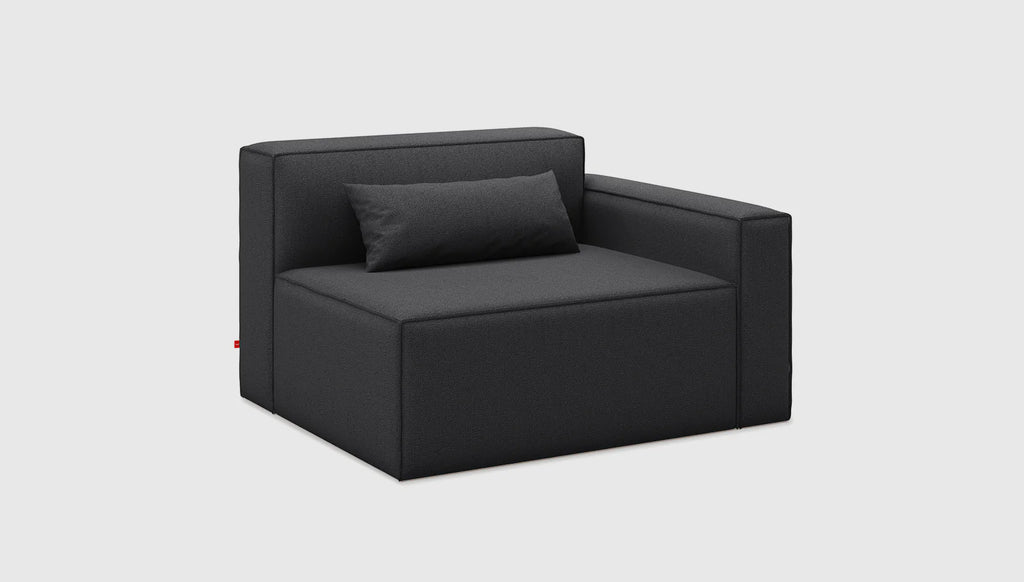 The Mix Modular Collection lets you mix and match components and fabrics to build a custom sectional, sofa or seating group to perfectly suit your space. The design uses 7 basic components (Left Arm, Right Arm, Armless, Corner, Ottoman, Block Table & Prism Table) which can be combined to create an unlimited number of seating configurations. Choose matching fabrics or mix things up to make it your own. Components can be easily reconfigured or added later to adapt to the changing needs of any home or workspace. The tight seat and back give the design, a clean-lined, contemporary look, and each component has French seams to subtly soften the edges. Select components include a matching bolster cushion for added style and comfort. Constructed with kiln-dried 100% FSC© Certified hardwood in support of responsible forest management.Mix Modular uses a clean, ultra soft, long-strand fiber fill material that offers the comfort and feel of traditional waterfowl down. This material is created through a process that benefits the environment by diverting 79 plastic bottles away from landfills, waterways and oceans for each Mix Modular Chair we build.