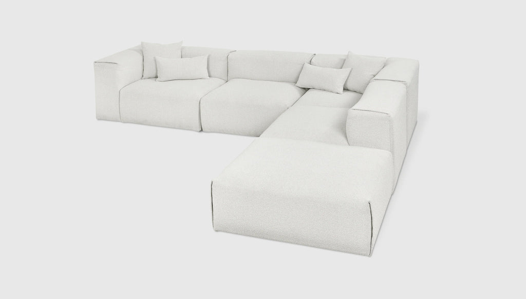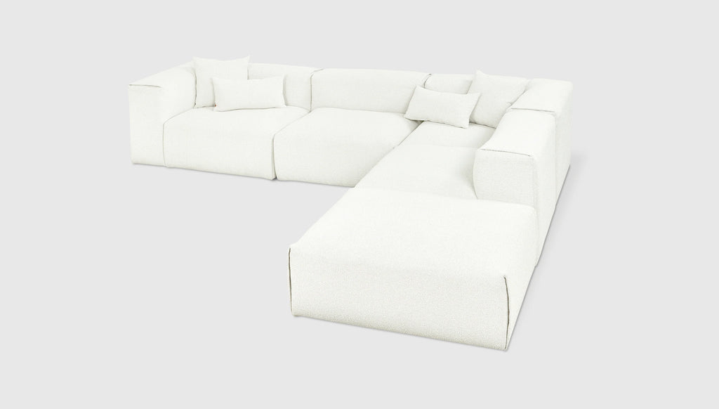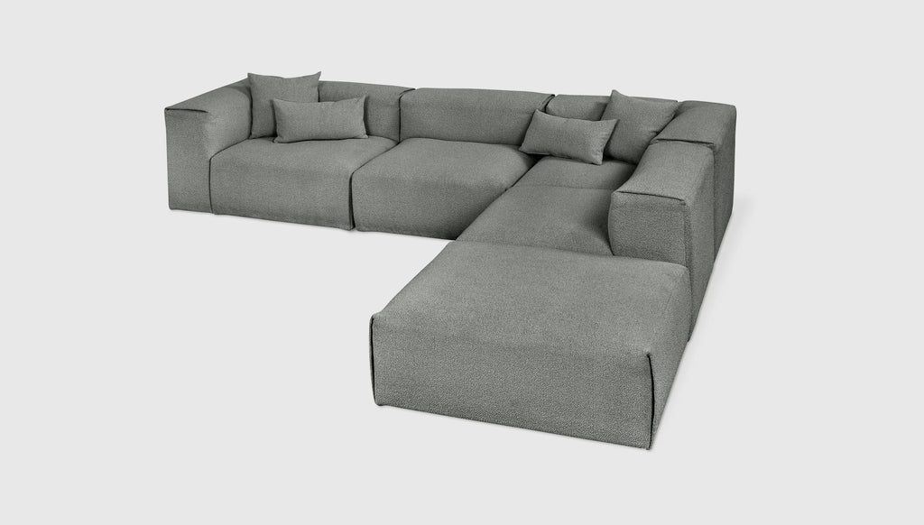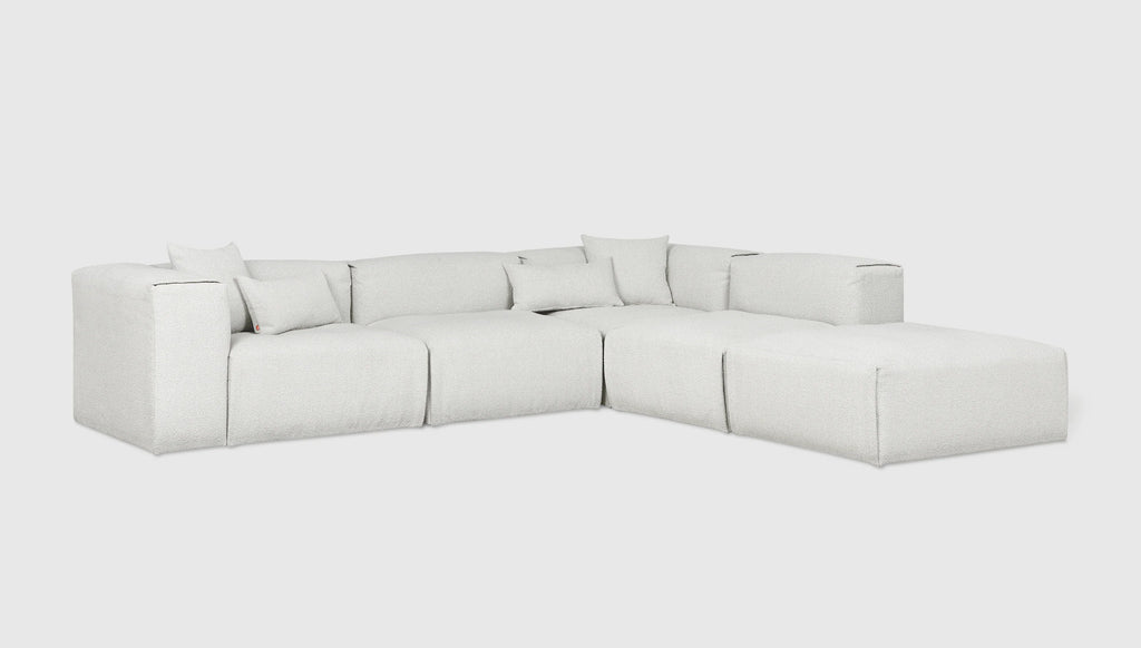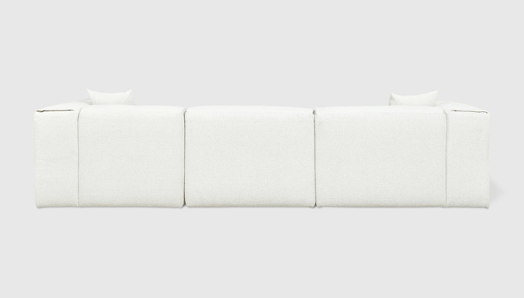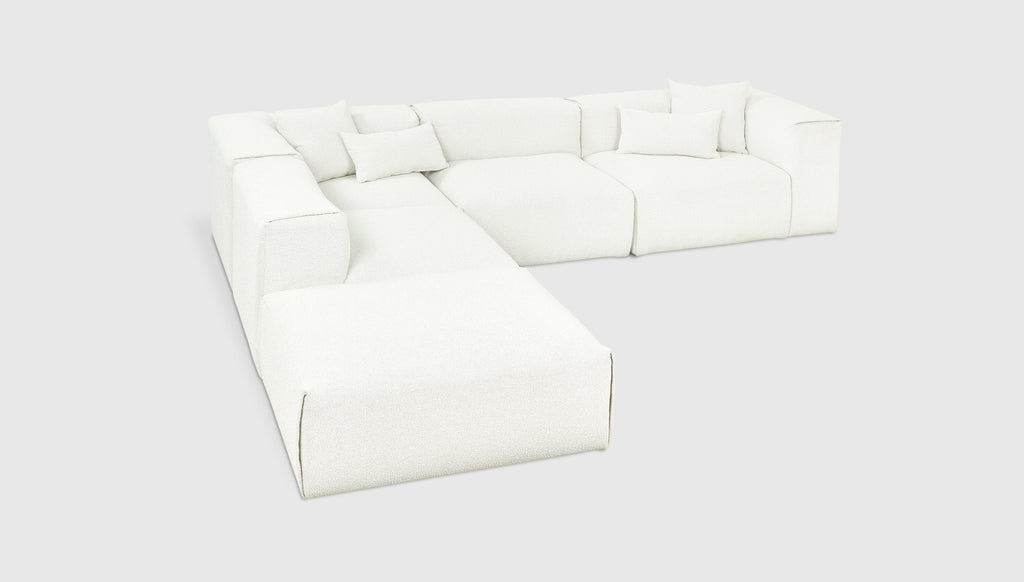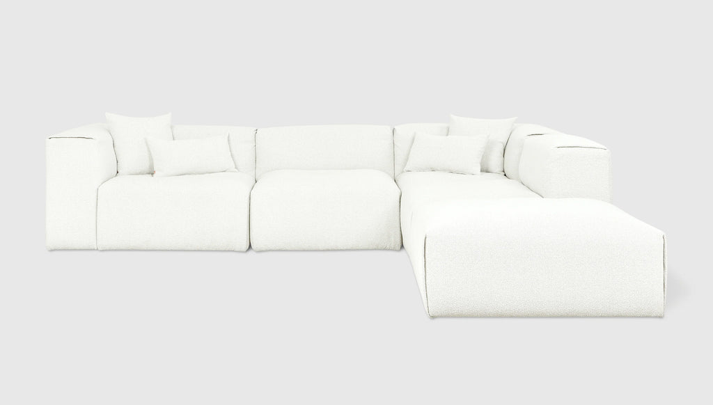 With plush comfort and a sophisticated, structured shape, our innovative Nest Modular Series invites you to sink in and stay awhile. The epitome of easy luxury, this versatile collection features five core components (Left Arm, Right Arm, Corner, Armless, and Ottoman) that offer near-endless configurations, allowing you to tailor your lounging experience to your evolving lifestyle. Each piece touts a plump low profile (courtesy of premium feather fill) encased in nubby bouclé fabric, with a Scandinavian-inspired modern shape that is versatile enough to hold court in a beach house, mountain escape, or boutique hotel lobby.