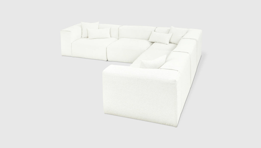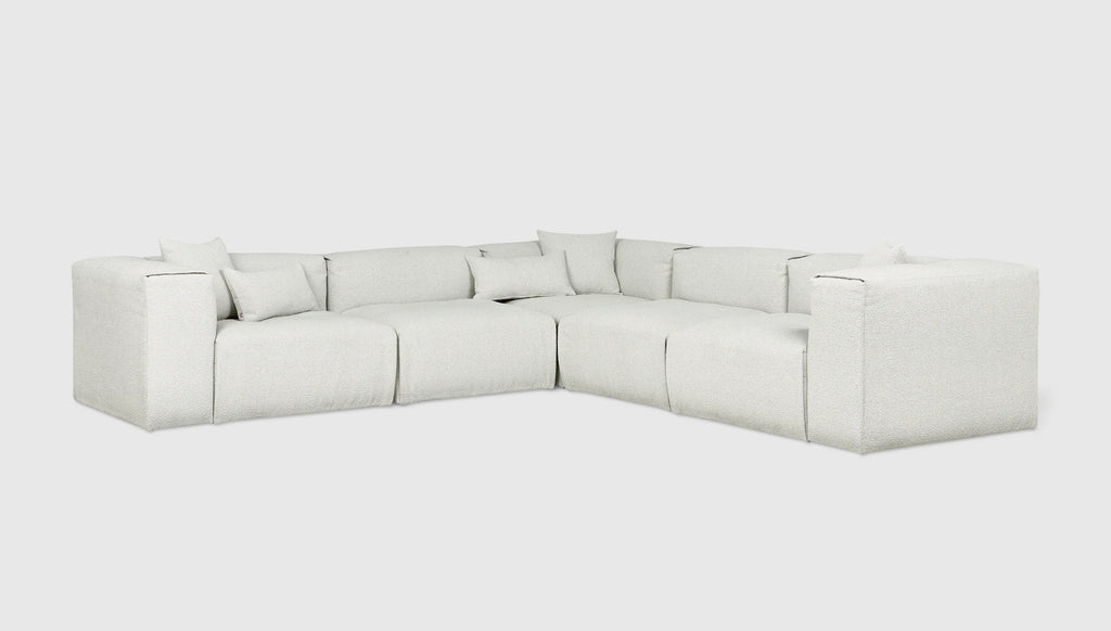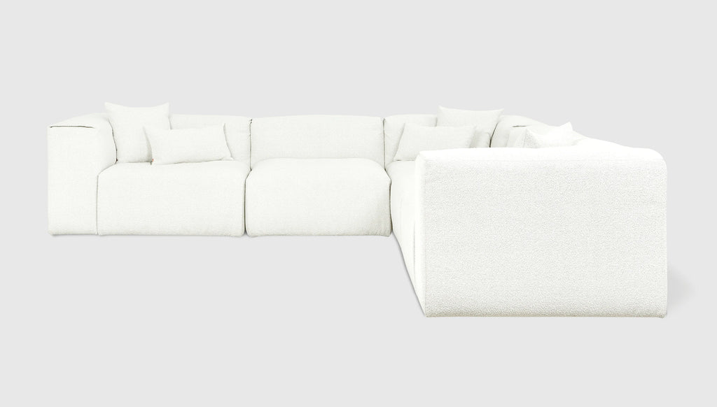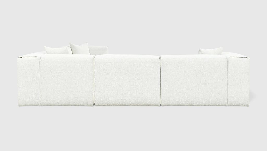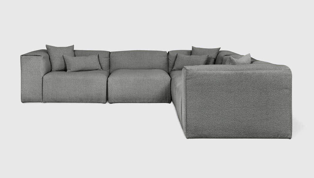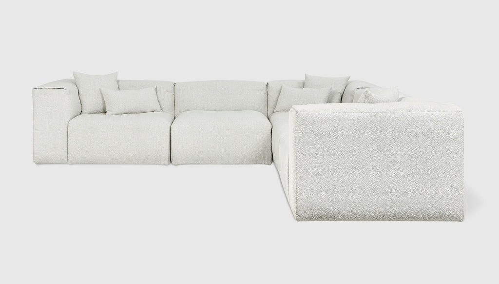With plush comfort and a sophisticated, structured shape, our innovative Nest Modular Series invites you to sink in and stay awhile. The epitome of easy luxury, this versatile collection features five core components (Left Arm, Right Arm, Corner, Armless, and Ottoman) that offer near-endless configurations, allowing you to tailor your lounging experience to your evolving lifestyle. Each piece touts a plump low profile (courtesy of premium feather fill) encased in nubby bouclé fabric, with a Scandinavian-inspired modern shape that is versatile enough to hold court in a beach house, mountain escape, or boutique hotel lobby.