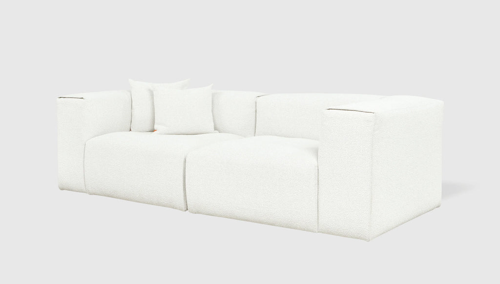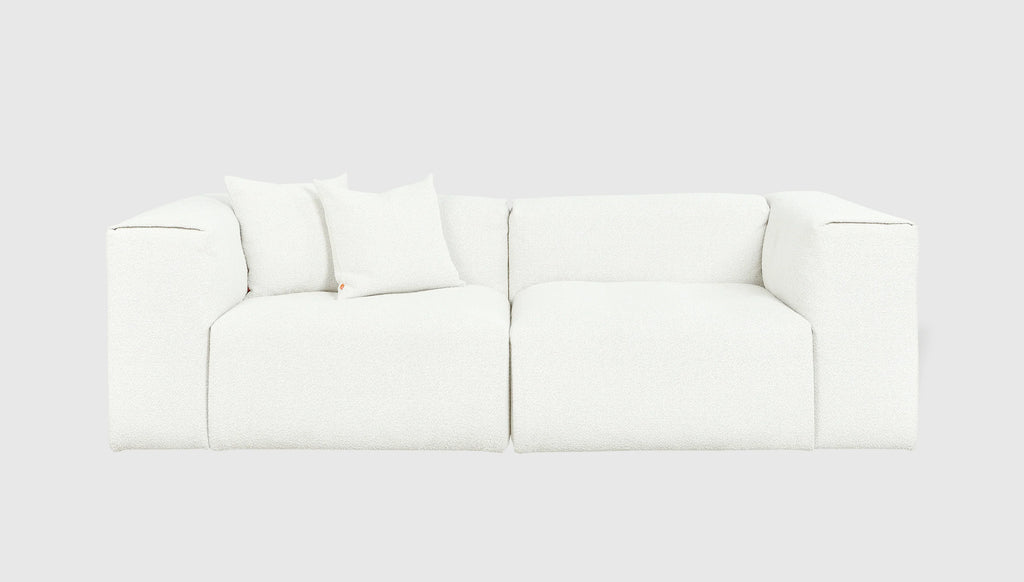With plush comfort and a sophisticated, structured shape, our innovative Nest Modular Series invites you to sink in and stay awhile. The epitome of easy luxury, this versatile collection features five core components (Left Arm, Right Arm, Corner, Armless, and Ottoman) that offer near-endless configurations, allowing you to tailor your lounging experience to your evolving lifestyle. Each piece touts a plump low profile (courtesy of premium feather fill) encased in nubby bouclé fabric, with a Scandinavian-inspired modern shape that is versatile enough to hold court in a beach house, mountain escape, or boutique hotel lobby.