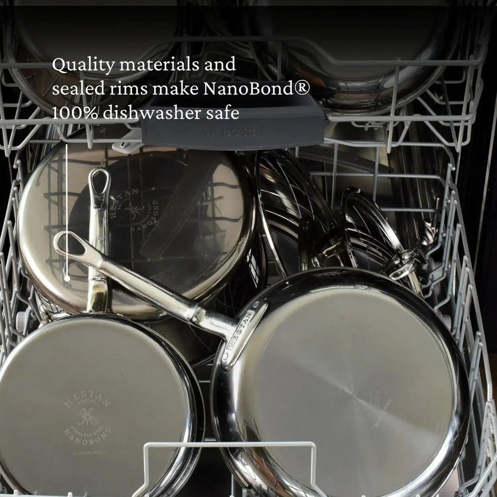 Flush Rivets - Chef-inspired flush rivets, make Hestan cookware easy to clean by preventing food built up. They are also ideal for stacking and nesting.