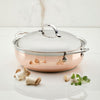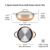 For ultimate performance and modern elegance, equip the kitchen with a Hestan CopperBond Induction Copper Dutch Oven. This durable and elegant 5-quart braiser and slow cookers has been constructed from five layers of stainless steel and a 100% copper core for quick, even heating and exceptional temperature control. The stainless steel lid rests snug on the rim to lock in vital heat to take advantage of the versatility of the Dutch oven to make everything from hearty, flavorful stews and braised meats to freshly baked bread. Ergonomic handles have been designed for maximum comfort and control, and are secured with flush rivets for easy cleaning and easier nesting of cookware pieces in storage. Handcrafted in Italy, this innovative, induction compatible Dutch Oven is oven safe to 600°F for superior cooking versatility.
