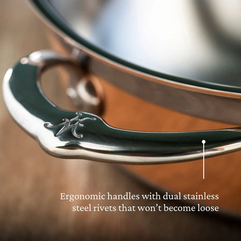 • 100% Copper Core - Innovative 5-layer bonded construction with a thick 100% pure copper core for quick heating, exceptional temperature control, and even heat distribution.