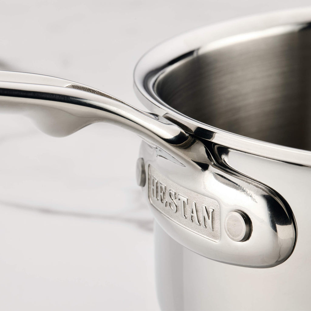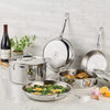 Built to shine, each piece features tri-ply clad stainless steel for lifetime warp-resistance. Sealed rims prevent delamination and offer dishwasher-safe convenience. Induction-suitable and oven safe up to 600ºF, this cookware is equipped with seamless handles designed by Chef Thomas Keller, eliminating food-trapping crevices and finished with flush rivets for easy cleanup.