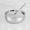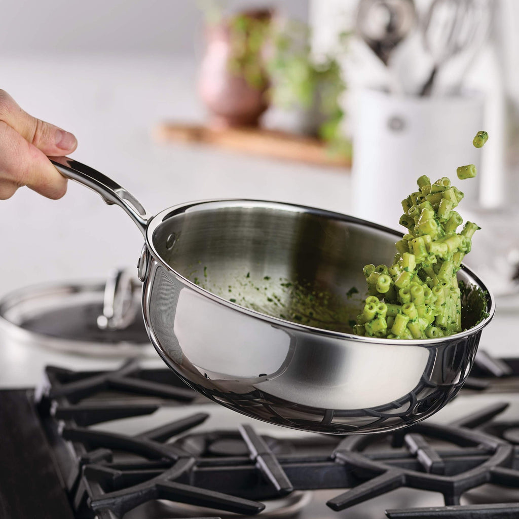 Purposeful innovation, functionality, and Italian craftsmanship converge in the ProBond® Luxe 3.5-Quart and 5-Quart Professional Clad Stainless Steel Essential Pan with Lid.