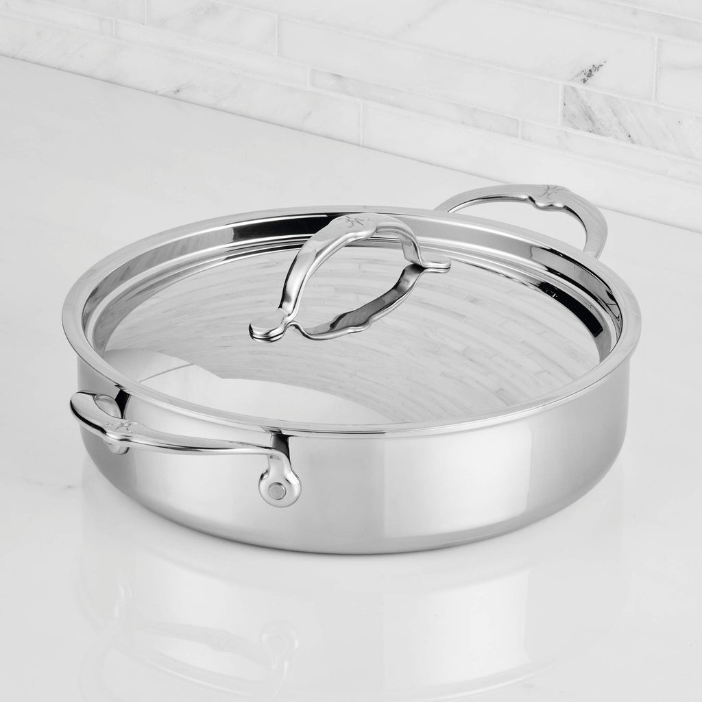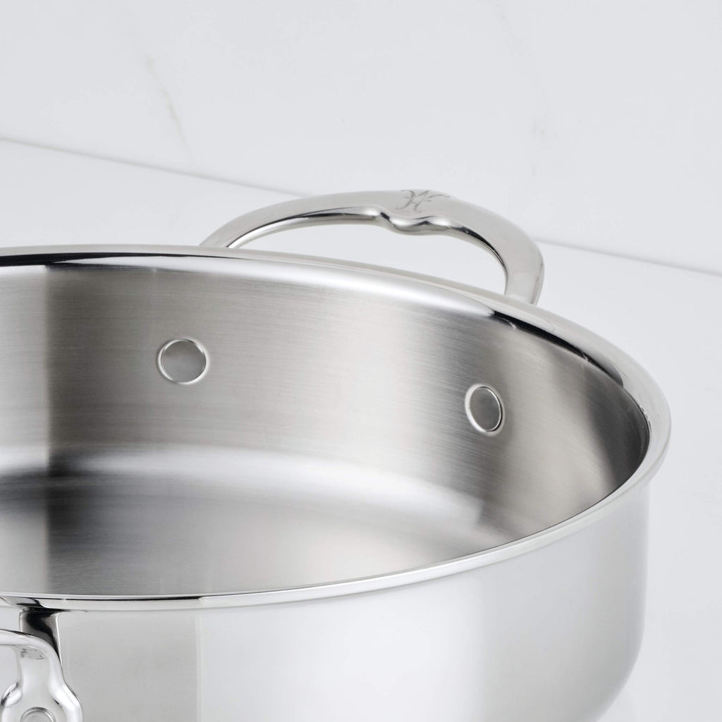 Built to shine, this sauteuse features tri-ply clad stainless steel for lifetime warp-resistance. Sealed rims prevent delamination and offer dishwasher-safe convenience. Induction-suitable and oven safe up to 600ºF, this cookware is equipped with seamless handles designed by Chef Thomas Keller, eliminating food-trapping crevices and finished with flush rivets for easy cleanup.