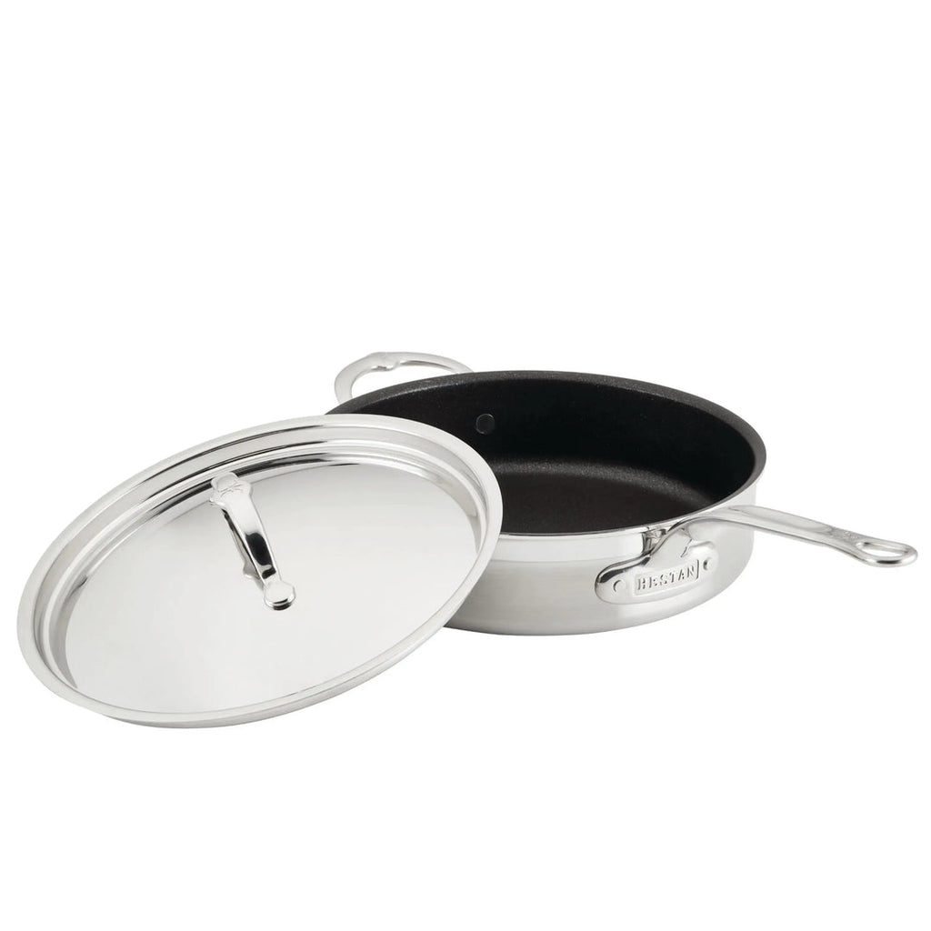 Push culinary boundaries with cookware innovation by equipping the kitchen with a Hestan ProBond Stainless Steel 3.5-Quart TITUM® Nonstick Sauté Pan with Lid. This medium-sized ProBond Professional Clad Stainless Steel sauté is handcrafted in Italy and features a tri-ply body with a responsive pure aluminum core for optimum performance, maximum durability, and fast, even heat distribution.