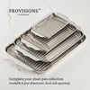 Introduce exceptional craftsmanship and lasting performance to the kitchen with the Hestan Provisions OvenBond Stainless Steel Eighth Sheet Pan and Rack Set. The mini but mighty eighth sheet pan is crafted from triple-bonded clad stainless steel with a responsive aluminum core designed to emit heat evenly, producing beautifully browned goods and perfectly roasted foods, while the roasting and cooling rack is crafted from stainless steel making it oven and dishwasher safe.