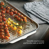 12" x 15" Medium Sheet Pan and Rack is crafted from durable, warp-resistant and dishwasher safe stainless steel. The tri-ply clad construction ensures even heat for perfect browning and roasting, with easy-to-grip handles.