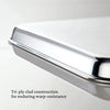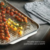 WARP-RESISTANT - Tri-ply clad stainless steel baking pans are thermal tested and engineered to be warp-resistant, maintaining their shape for a lifetime of oven baking and roasting