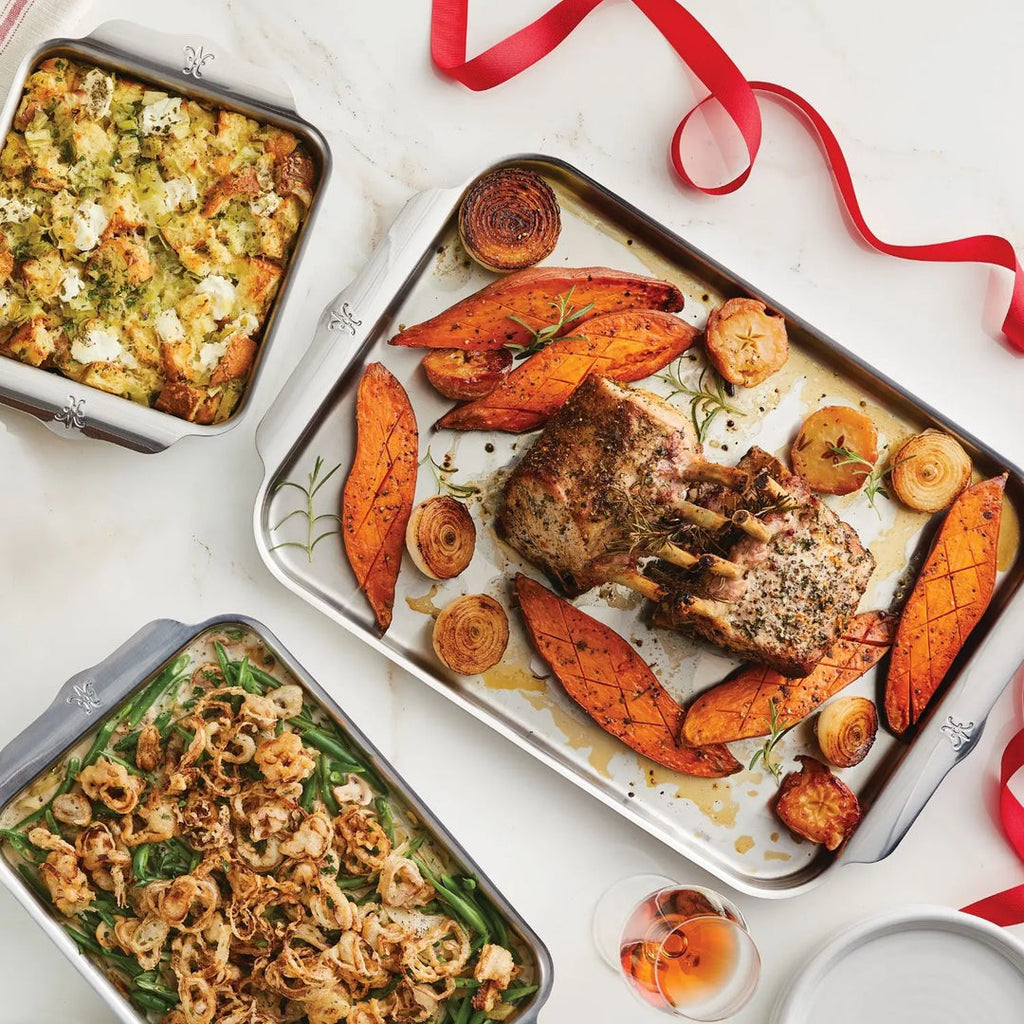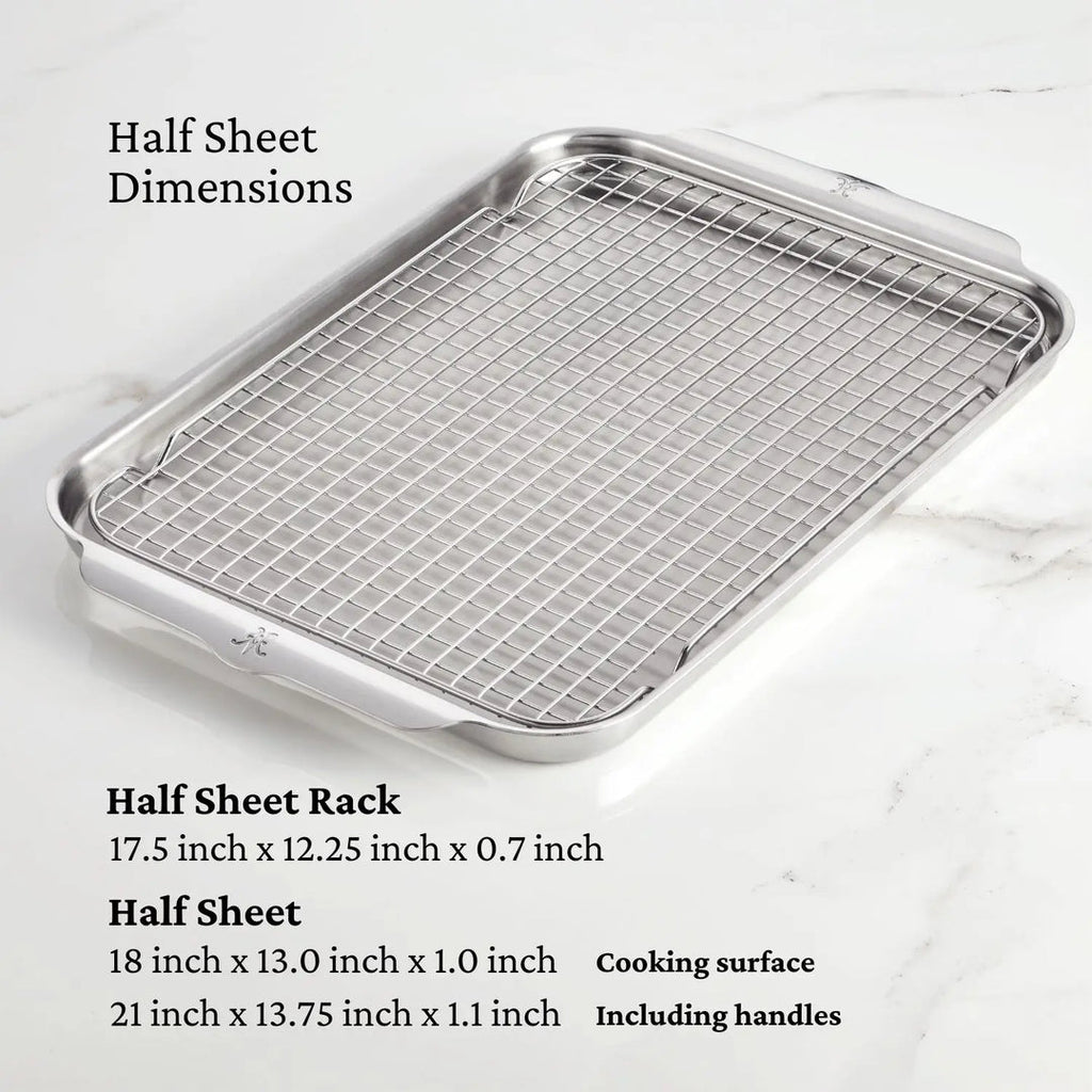 This complete set comprised of a Half Sheet Pan with Rack, Quarter Sheet Pan, Square and Rectangular Bakers, is the perfect choice to outfit your kitchen with the best ovenware that money can buy for a lifetime of baking and oven-roasting, perfect for holiday entertaining.