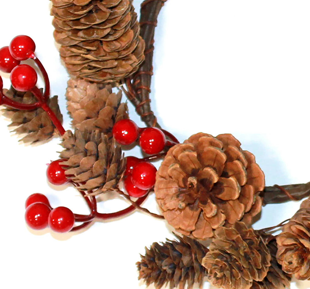 Illuminate your home with the natural beauty of this 4.5" Inner Diameter Mixed Berry Cone Candle Ring. Crafted with real pine cones and realistic-looking berries, this candle ring adds a touch of rustic charm to your decor. Simply place it around your favorite candle to create a warm and inviting centerpiece for your table or mantle. Whether you're celebrating the holidays or enjoying everyday ambiance, this charming candle ring brings the beauty of nature indoors. Get ready to light up your space with this delightful mixed berry cone candle ring.