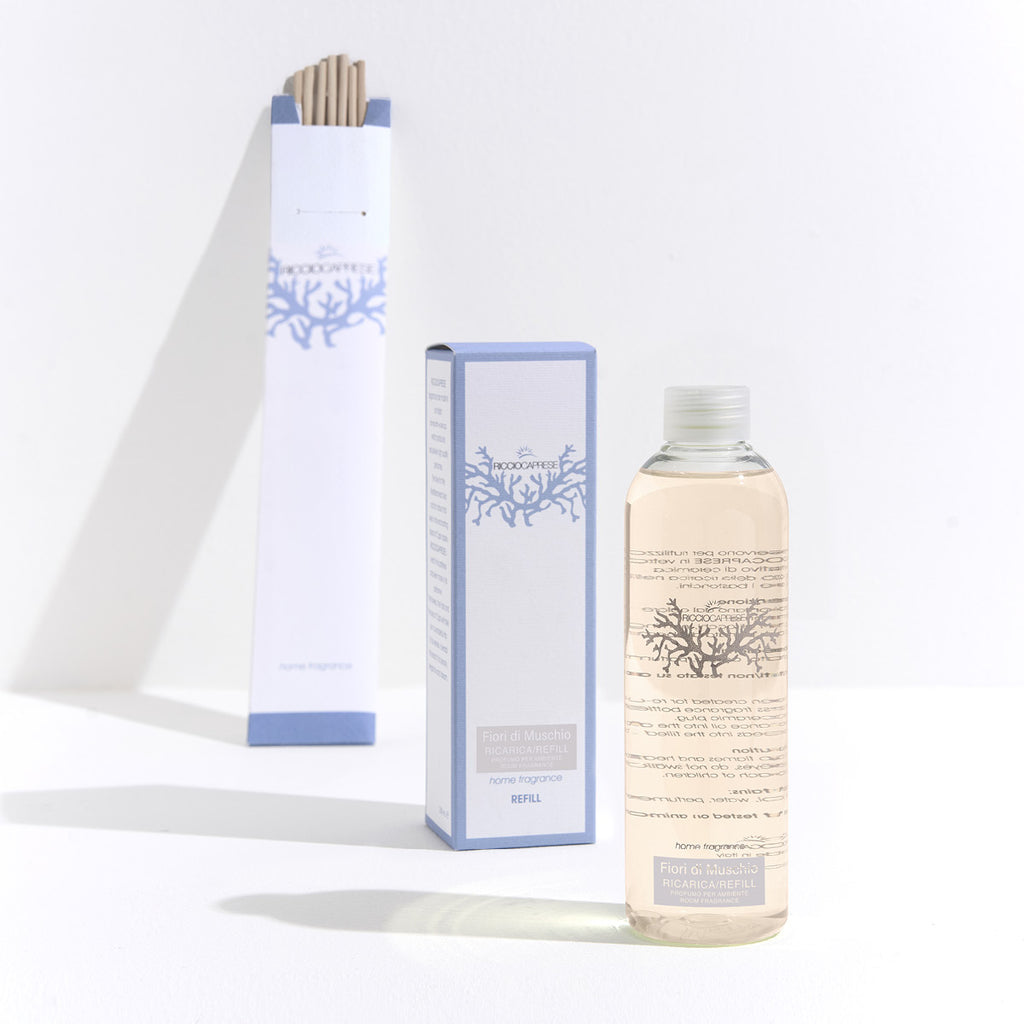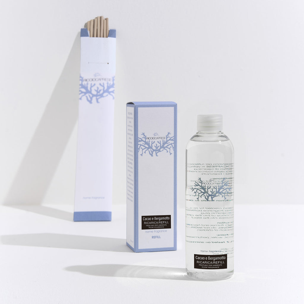Keep your home enveloped in the captivating Ricciocaprese fragrance with this generous 500ml refill. Wrapped in distinctive, refined packaging that conveys quality, each refill includes fresh diffuser sticks—making it effortless to maintain the luxurious ambiance you've come to love.