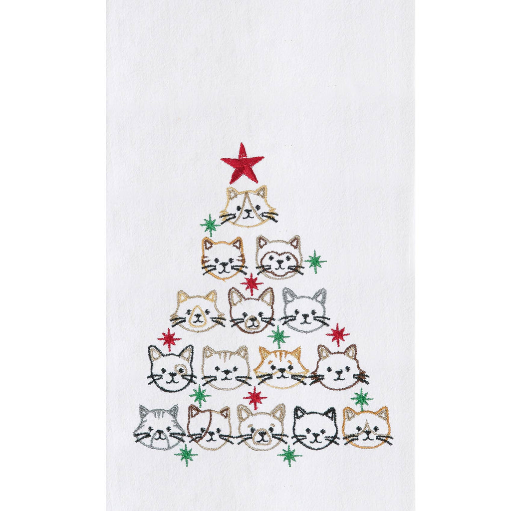 Welcome the holiday season with the Cat Face Christmas Tree kitchen towel. This festive towel features an embroidered design that will bring plenty of holiday cheer to your kitchen. Made from cotton, this soft and absorbent kitchen towel is designed to last through all your holiday baking and cooking adventures.