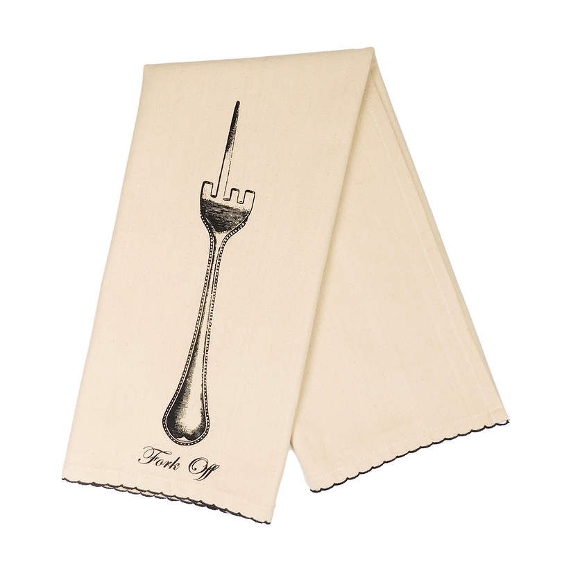 Keep it pleasant, sort of…The Fork Off tea towel has absolutely no filter.