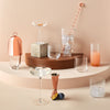 The NUDE Hepburn collection by Brad Ascalon presents a fresh, modern take on classic barware. Crafted from lead-free crystal, this cocktail shaker includes a metal top with a highly polished copper finish. With its sweeping curves and textural contrast, this design proves that traditional glassware works beautifully in a contemporary context. Long drinks, low-ball, and martini glasses are also available.