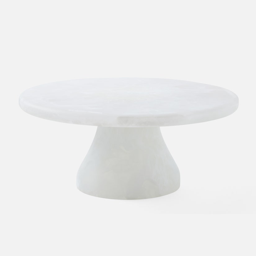 Bring joy to tabletops with Hugo---an elegant series of two-tone resin pieces in mesmerizing marbleized finishes and versatile sizes.