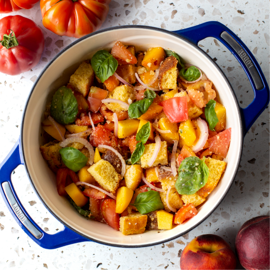 This colorful collection of enameled cast iron is the first of its kind to be made on US soil. Inspired by the best in American design, this piece will help you bring all of your favorite dishes to the table. It takes everything you love about cast iron, like great heat retention and durability, and combines it with an enameled surface that can withstand acidic ingredients. Let’s hear it for Sunday sauce!